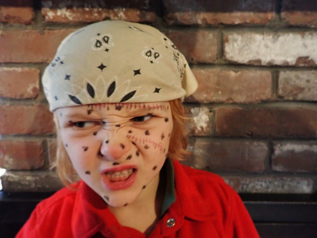 Was pirate themed this year. One morning, Hugo woke up and said that he needed to see a real pirate ship. So we looked online for museums that had pirate exhibits. I kept talking about that awesome exhibit Gideon and I went to about pirates. It was in Portland, by the water on Commercial Street. After, we went for pizza at McCucci’s and we ate it by the small-rail train next to the bike path in Portland. That day was so much fun and that museum was super. It’s closed now.