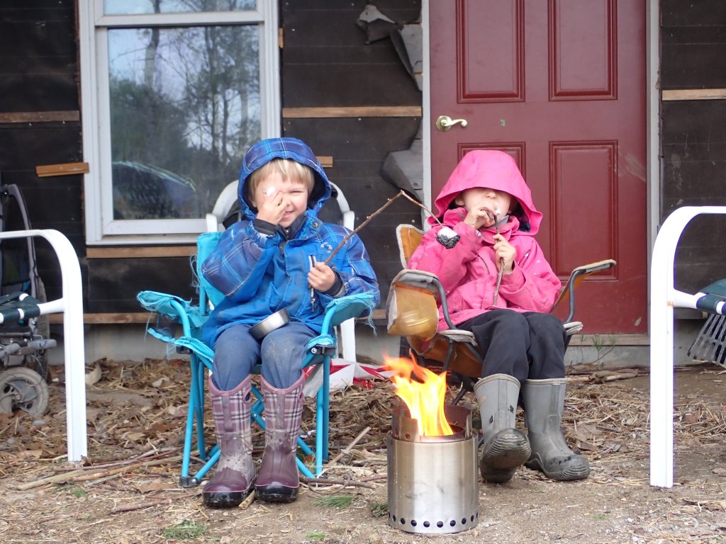 I like this random picture of a spring-time rainy day. Under the bansch-porch was the most comfortable, dry spot to roast marshmallows.