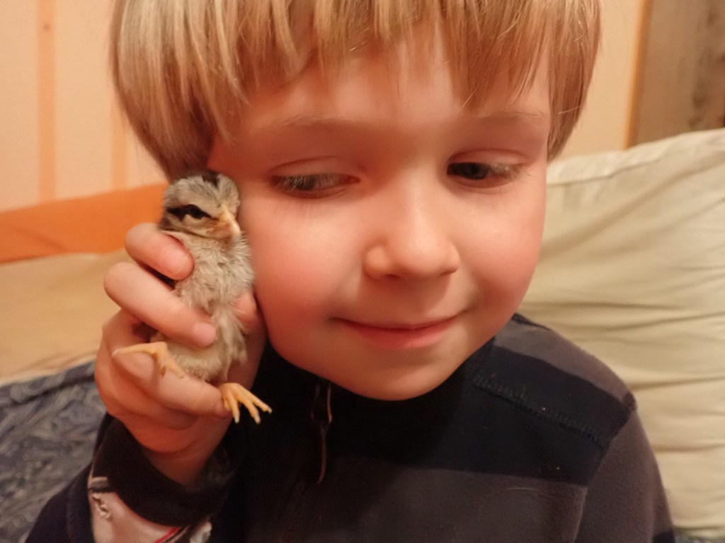 Pax first named his little bantam “Pirate’s Booty” but changed it the next day to the more sophisticated “Chamber”. Hugo’s chick is named “Bone Dragon”.
