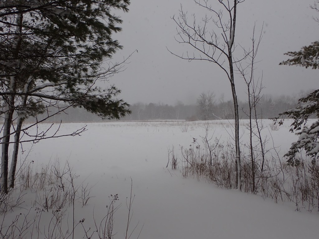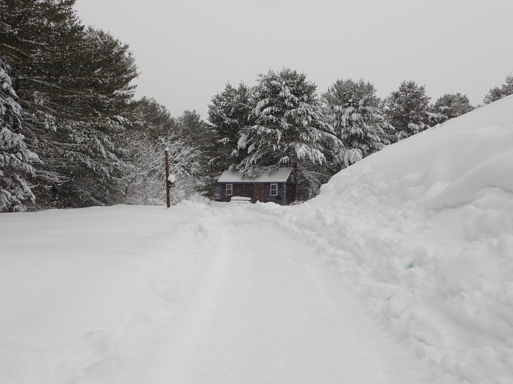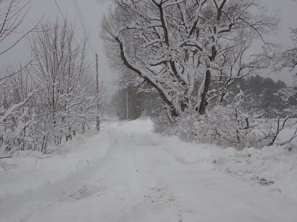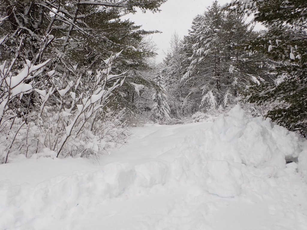 The picture below is looking at the old light and electrical box on the old railroad tracks. I couldn’t walk any further because the snow was too deep. This was as far as the tractor got to.